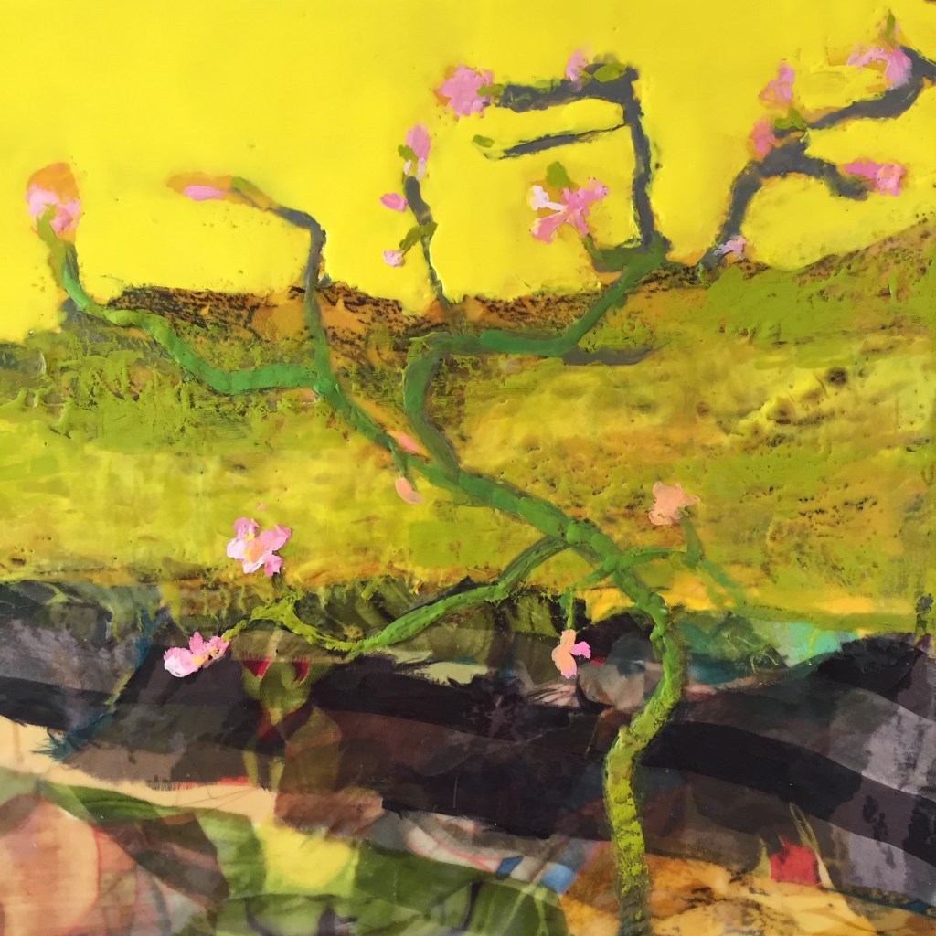 Santa Fe Posted bylauriedouglasartJanuary 27, 2022February 15, 2022Posted inLaurie Douglas Encaustic and mixed media on wood panel, 16” x 16”, $700