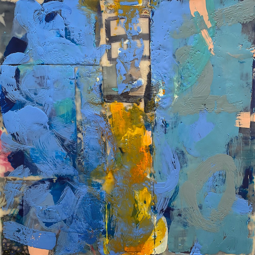 Encaustic and mixed media on wood panel, 24” x 24”, $900
